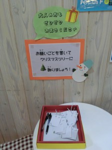 七夕のように紙にお願いごとを書いて、ツリーに飾ってもらいます。